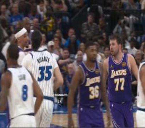 體育播報03月22日宣 NBA常規賽,湖人客場105-104險勝魔術。比賽第三節,湖人當家球星盧卡·東契奇和魔術中鋒戈...