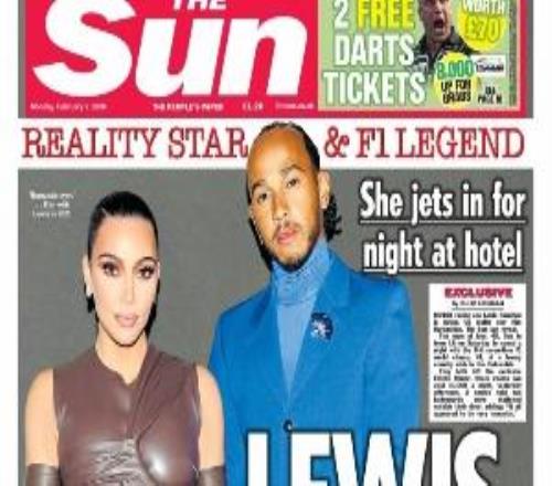 專業!太陽報獨家:漢密爾頓約會金卡戴珊,斥資12萬鎊共度良宵