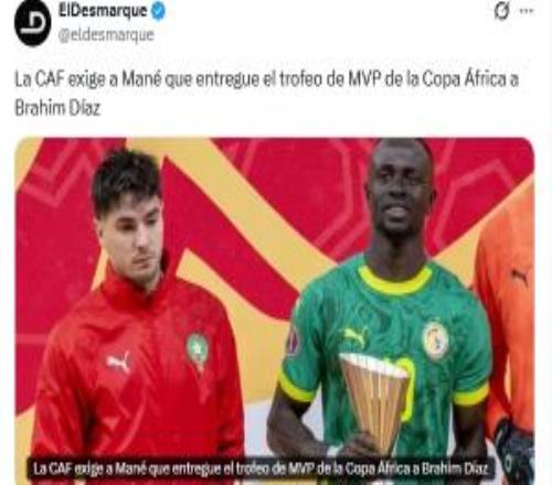 真實性存疑!網傳非洲足聯要馬內歸還非洲MVP獎杯,想頒給迪亞斯