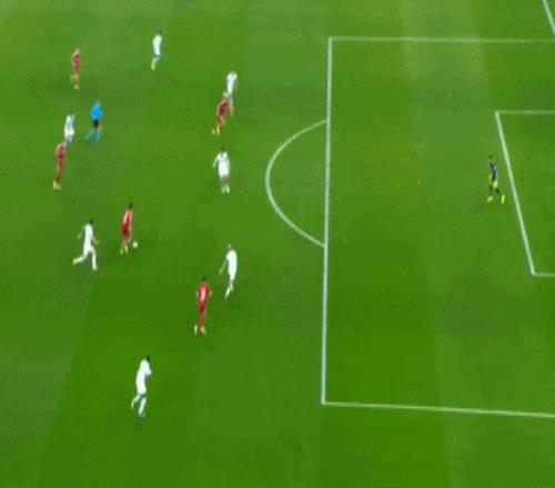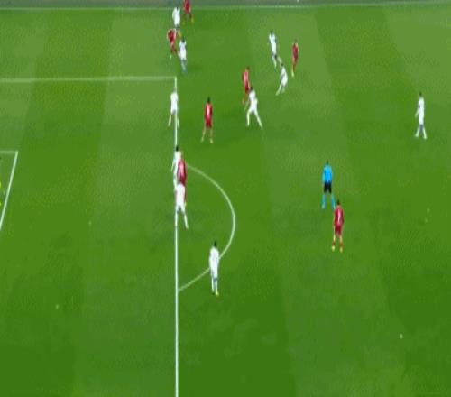 第40分鐘,弗林蓬右路突破傳中,薩拉赫搶點腳后跟巧妙打門,擦著橫梁上沿稍稍高出。