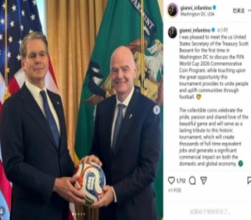 因凡蒂諾與美國財政部長貝森特會面,討論世界杯紀念幣項目