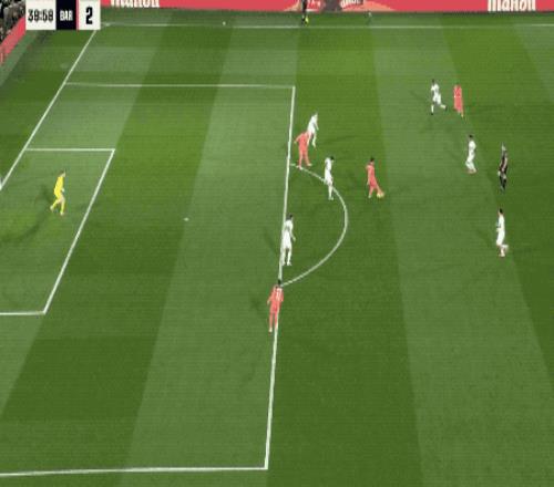 第40分鐘,德容無私傳球,費蘭·托雷斯無人盯防,終于將球打進。半場結束,巴薩狂轟17腳,獲得大把機會,卻只取得了1球的領先。