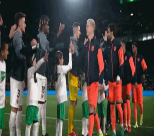 雙方球員步入球場(chǎng),比賽即將打響