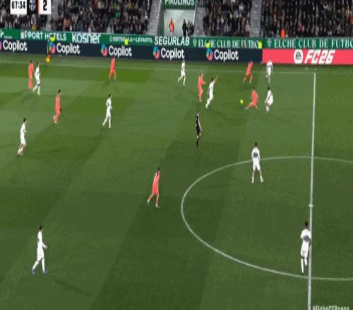 第29分鐘,阿爾瓦羅-羅德里格斯反越位單刀低射破門,埃爾切1-1!