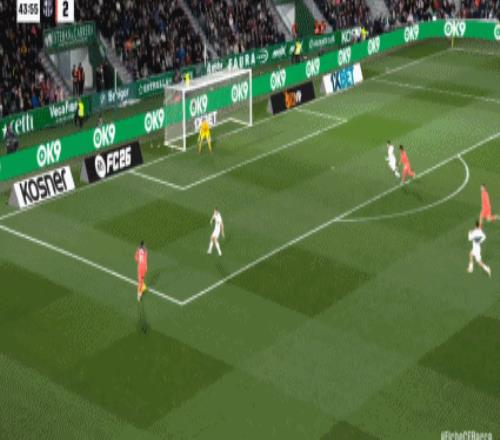 第45+2分鐘,費(fèi)蘭-托雷斯單刀過(guò)門將打門,皮球被對(duì)方解圍