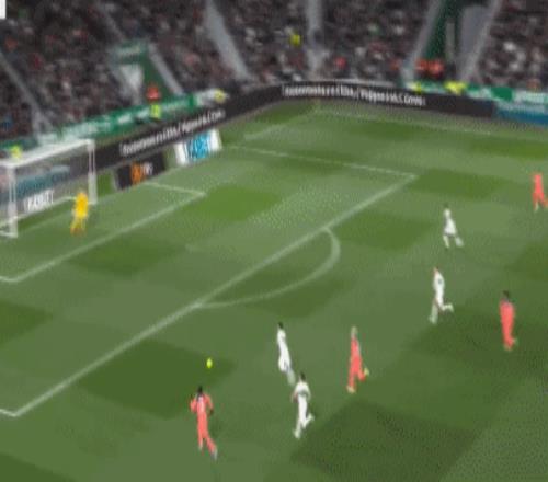 第28分鐘,巴薩前場踢出眼花繚亂的配合,奧爾莫禁區外遠射,擊中橫梁彈出。第29分鐘,巴萊拉送出直塞,埃里克-加西亞造越位失敗,阿爾瓦羅-羅德里格斯單刀推射破門,埃爾切扳平,1-1!