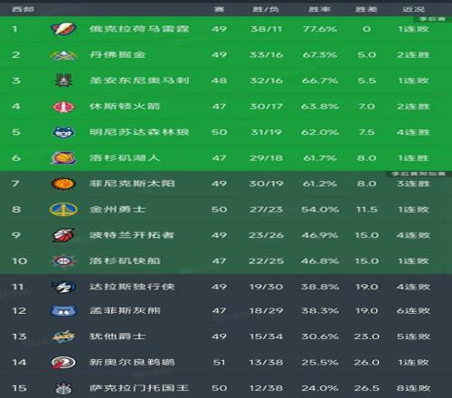 西部最新積分榜