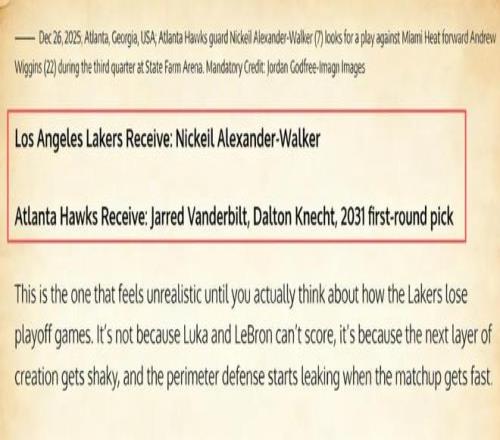 據美媒《Fadeaway World》最新的報道,老鷹后衛亞歷山大·沃克成為湖人引援雷達上的最新目標,并且他們還列出了一套潛在的交易方案——