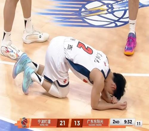 然而,讓人感到遺憾的是,雙方比賽進行到第二節還有9分鐘時,徐杰又受傷了,我們可以看到,徐杰躺在地上,顯得十分痛苦,并且,還捂住自己的左腳,沒錯,徐杰的腳又崴了……