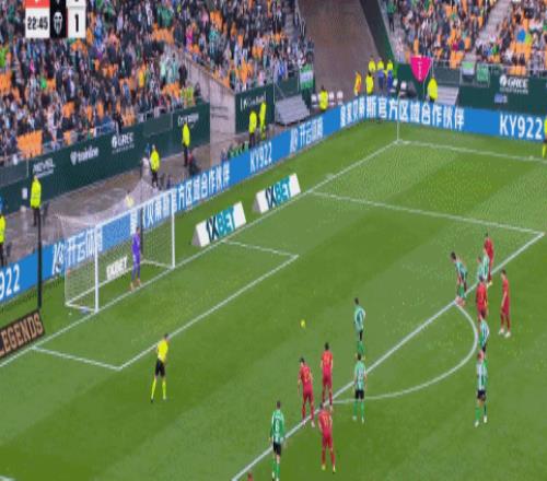 第20分鐘,瓦倫西亞通過一次流暢配合打破僵局,貝爾特蘭送出妙傳,里奧哈在弧頂附近低射破門,貝蒂斯0-1落后。