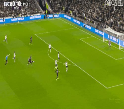第52分鐘,索蘭克突入禁區破門,VAR介入后確認進球有效!熱刺1比2曼城!