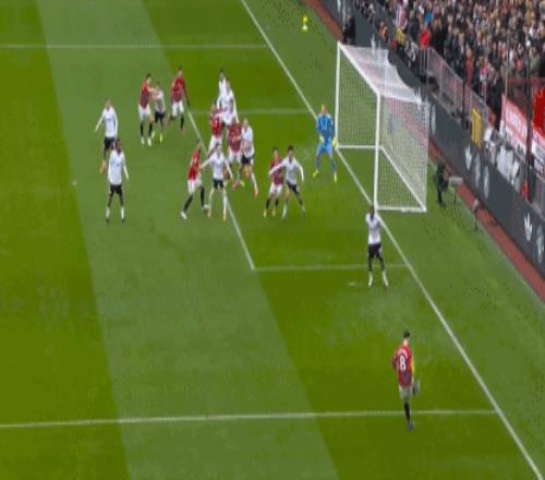 第19分鐘,曼聯球員B費主罰右側任意球傳中,卡塞米羅頭球破門,曼聯1-0領先。
