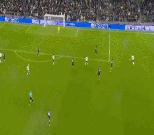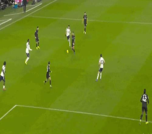 下半場,托特納姆熱刺強勢反撲,第53分鐘,索蘭克亂戰(zhàn)中打進一球,慢動作顯示,索蘭克射門時并沒有踢到足球,而是踢在曼城后衛(wèi)的腳腕上將球打進的。