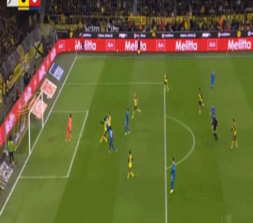 第68分鐘,多施手球送點,吉拉西主罰命中,多特2-2海登海姆