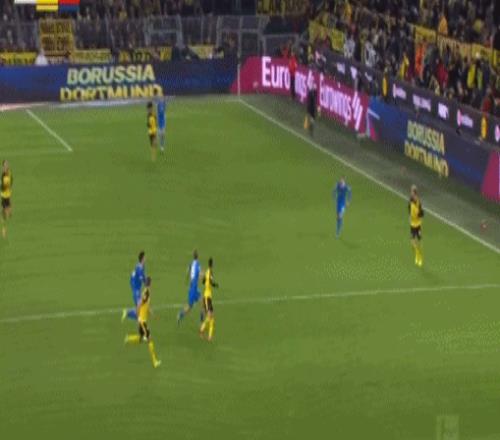 第44分鐘,拉馬伊脫手,安東破門,多特1-0海登海姆
