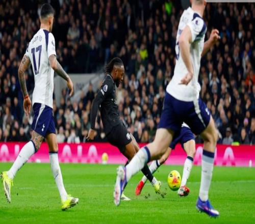 3分鐘后,索蘭克在禁區內起腳射門,疑似踢到了格伊,熱刺扳回一城。