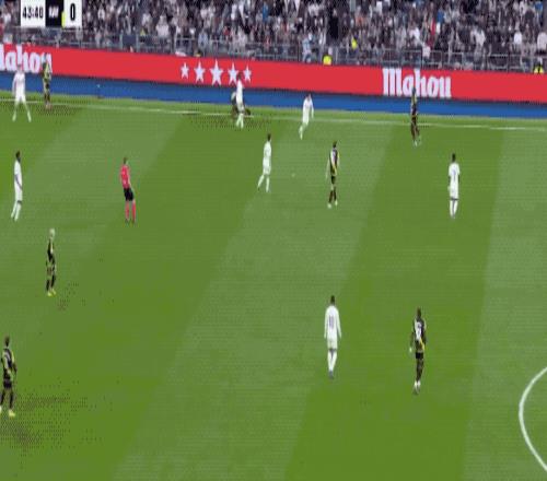 第15分鐘,皇馬打出快速反擊,維尼修斯毫不猶豫選擇單干,禁區(qū)內(nèi)一對(duì)三,兜射遠(yuǎn)角破門。