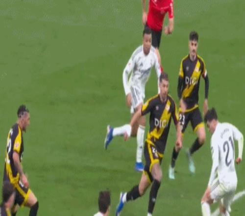第43分鐘,卡馬文加做球,卜拉欣-迪亞斯殺入禁區,過于無私選擇橫傳姆巴佩,被巴列卡諾后衛斷下。