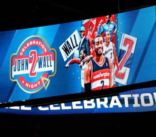 周四,華盛頓奇才隊舉辦了“約翰·沃爾慶祝之夜”活動,向這位球隊21世紀以來最具標志性的球員致敬。活動現場,球隊向球迷分發了沃爾的搖頭娃娃,在對陣密爾沃基雄鹿隊的比賽中場休息時,大屏幕上播放了沃爾的精彩集錦,并安排他在中場休息時發表了講話。