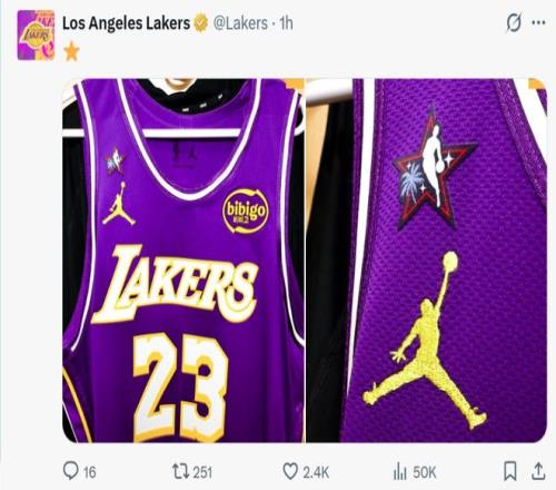 湖人也在賽前第一時間調整詹姆斯的球衣,用全明星補丁取代了原本的23賽季補丁。