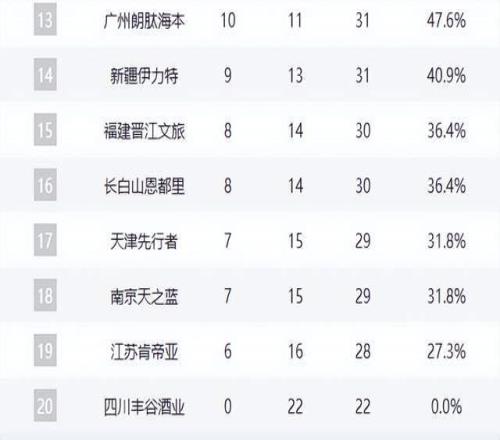 黑馬深圳與山東分列第四、第五,山東少賽一場但勝場占優,理論上排名第四。兩隊近期狀態火熱,10戰8勝,展現出強勁的競爭力。另一黑馬青島隊擊敗北京止住五連敗頹勢,排名第六;北京則遭遇兩連敗,排名下滑至第七,球隊磨合問題與主教練許利民的用人策略備受質疑。浙江隊雖位列第八,但本輪負于廣廈暴露了與頂級強隊的實力差距。