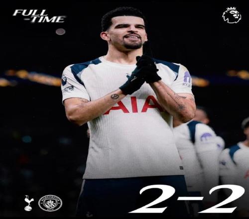曼城22遭熱刺逼平,近6輪僅1勝哈蘭德低效,索蘭克雙響封神