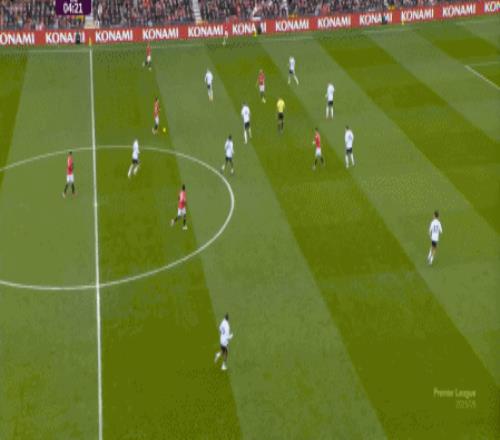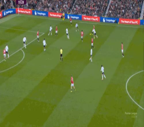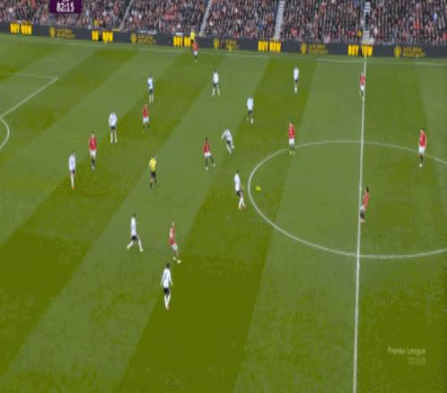 這顯然是找對進(jìn)攻方向的合理收獲,但是,曼聯(lián)的防守壓力并未因此減輕,富勒姆在這一側(cè)承壓,但也能在這一側(cè)直接向前,不管是在丟球前: