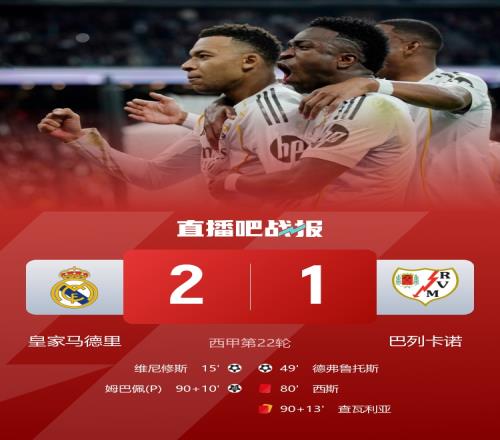 皇馬聯賽6連勝,落后巴薩1分!維尼修斯破門+染黃下輪停賽,姆巴佩第100分鐘點球絕殺