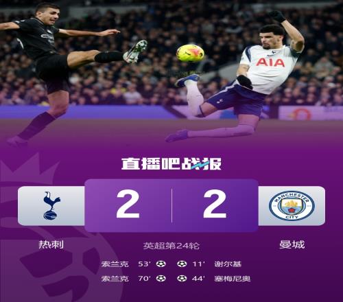 曼城近6輪英超1勝4平1負,距榜首6分,熱刺6輪不勝;謝爾基、塞梅尼奧破門,索蘭克蝎子擺尾破門+雙響扳平;裁判判罰屢引爭議。