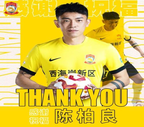 在官宣2名外援留隊的同時,青島西海岸還官宣了球員的離隊。俱樂部發文稱,經與陳柏良友好協商并達成一致,球員正式告別俱樂部。