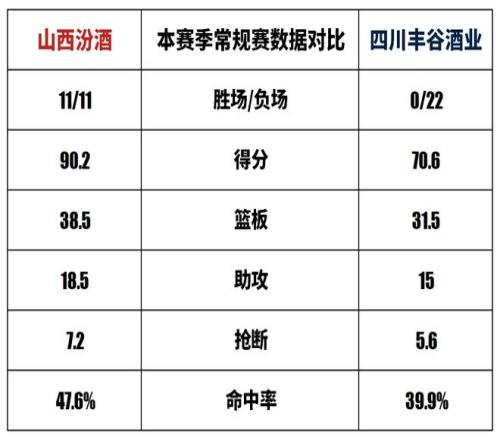 山西汾酒與四川豐谷酒業歷史上一共交手32次,山西汾酒19勝13負。本賽季兩隊交手1次,山西汾酒1勝0負。