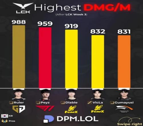 2026LCK杯前三周分均傷害排行榜:Ruler第一Gumayusi上榜