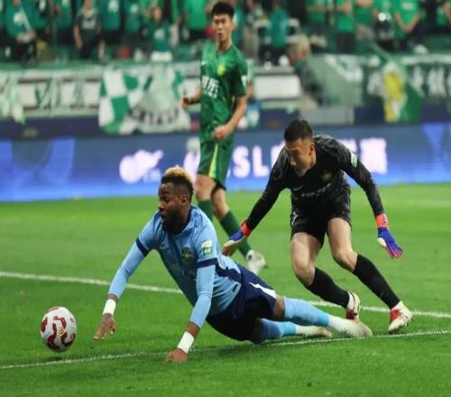 浙江俱樂部綠城隊球員布彭扎(左)在比賽中拼搶。