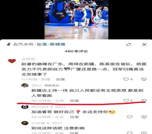 賽后,面對(duì)新疆球迷評(píng)論:“趙睿兩罰不中是不是很生氣”,趙睿直接開(kāi)懟:“回去打馕吧!”