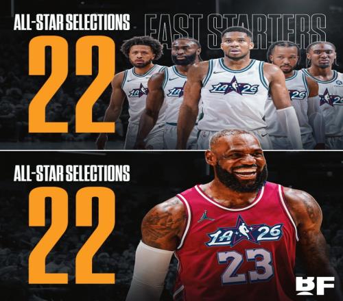 最長的河!詹姆斯入選全明星次數與東部首發5人總和相同!