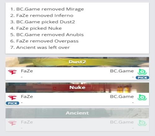 圖一選圖 BC選擇Dust2沙漠2(Faze選擇CT方開局)
