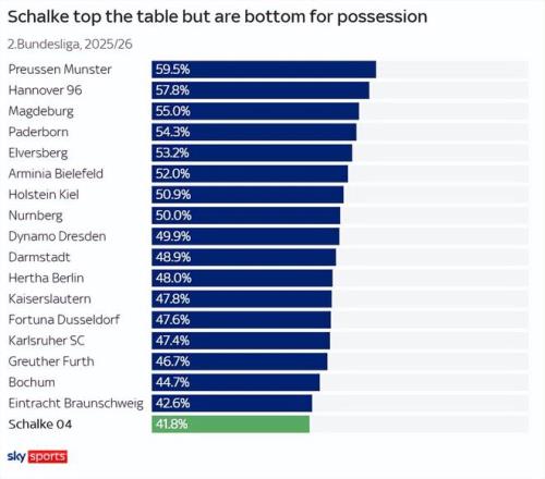 不過,與足壇諸多知名教練不同的是,當穆斯利奇描繪球隊愿景時,他腦海中浮現的是球隊“無球狀態”的畫面。沙爾克04的積分排名榜首,但控球率卻墊底。