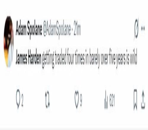火箭記者Adam Spolane回應:詹姆斯-哈登這個級別的球星在過去的五年里即將被交易第四次,這實在是太瘋狂了。