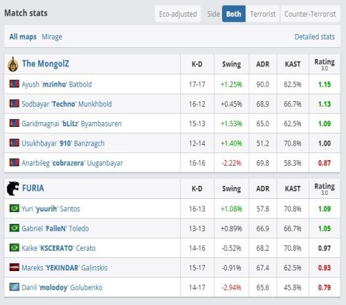 第十一局TheMongolz選擇鋼槍,但YEKINDAR在A二樓前頂拉滿信息還雙殺!被迫轉B但是又被布防的FalleN雙殺!最后一局Mongolz沒錢強攻B區,被molodoy大狙四殺全部收割!上半場Furia拿下8-4的優勢局面!