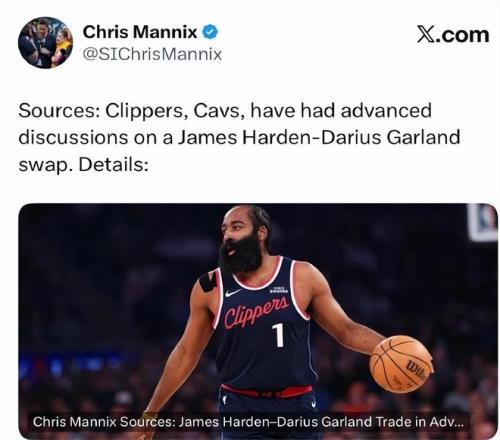 就在剛剛《體育畫報》名記Chris Mannix報道前方傳來重磅消息——多位消息人士透露,騎士和快船已經就一項交易進行了深入討論,該交易將把哈登送去克利夫蘭,換來達里厄斯·加蘭。該消息爆出來后,Shams也表態確認——表示快船與哈登均正在積極努力,在交易截止日前完成哈登的換隊交易。