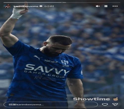 官宣后,本澤馬更新社媒,曬出自己身穿新月球衣單手指天的圖,配文“showtime(表演時間)??”。