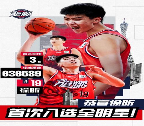 CBA官方公布了今年全明星賽的陣容名單,廣州男籃的國產內線球員徐昕入圍,球隊發文進行祝賀。在這次票選中,徐昕總共獲得了636589票,位列南區前場第3名!這是徐昕職業生涯首次入選全明星,在今年的全明星賽事上,他將以輪換球員的身份代表南區明星隊出場。