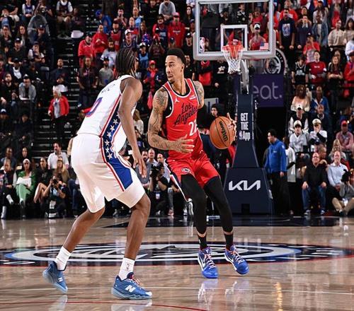本場比賽中,快船雖然輸掉了比賽,但是球隊的替補側翼新星喬丹-米勒(Jordan Miller)的表現還是值得肯定的。米勒全場出場27分44秒,投籃10中9,三分線外1中0,罰球4中3,得到了21分4籃板2助攻1搶斷的數據,還有3次失誤,正負值為+2。米勒在進攻端的效率簡直是高到離譜,他的突破和終結能力都非常出色,他在中距離投籃方面的穩定性同樣不俗,他的出手次數并不多,但是他也是抓住了不多的機會得到了不少分數,展現出了自己應有的實力和價值。米勒在防守端的表現其實同樣是相當不錯的,他也是證明了自己有著不俗的防守能力。米勒也算是本場比賽中快船為數不多的亮點了,他在攻防兩端都起到了很好的效果,可惜其他球員的表現確實是不太理想,米勒也沒有辦法幫助球隊扭轉局面。