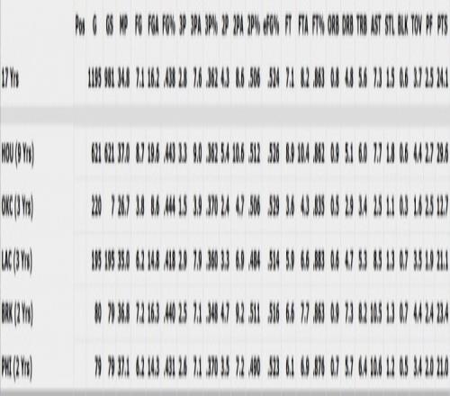 哈登生涯在各隊的數(shù)據(jù)對比: