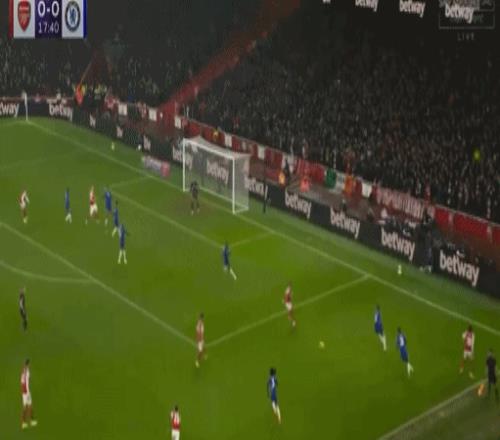 第43分鐘,庫庫雷利亞左路橫傳,恩佐內切勁射,凱帕單拳將球擊出。上半場結束,阿森納暫時0-0戰平切爾西。