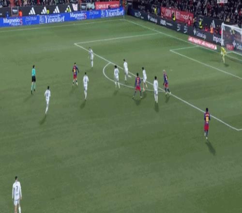 第39分鐘,德容前場(chǎng)斷球后,分給了右路的亞馬爾,西班牙天才少年冷靜推射建功,幫助巴塞羅那取得了1-0的領(lǐng)先。