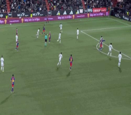 第43分鐘,阿爾瓦塞特打穿了巴薩后防,給普埃爾塔斯創(chuàng)造出了半單刀的機(jī)會(huì),阿勞霍貢獻(xiàn)關(guān)鍵解圍。