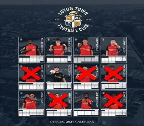 和其他俱樂部的日歷一樣,盧頓的2026年日歷每個月都印有一名球員,然而這12人里面已經有5人離隊。日歷的開頭部分尚可,一月、二月、三月和四月所對應的球員目前仍在隊中。