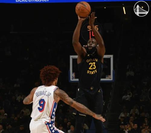 首節(jié)比賽,勇士火力全開(kāi),全隊(duì)三分合計(jì)14中8、命中率高達(dá)57%;76人三分10中3、命中率僅30%。