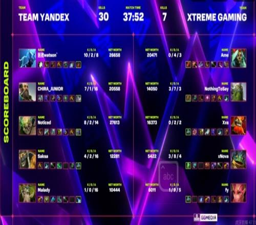 本局比賽XG選出五號位朗戈+一號位奶綠但是線上直接被Noticed孽主針對啊!Maladych大樹還來gank了兩波讓XG優勢路對線直接爆炸!中期早早等級領先,出了笛子A杖的Noticed孽主帶隊掃圖擴大優勢!XG幾次動手但是NTS小小先手根本回不來!Yandex穩步拉開經濟差,等到電魂和小Y都出到BKB了大局已定!最終Yandex連續贏團擊殺XG眾人結束比賽。這樣XG戰績來到1-1!